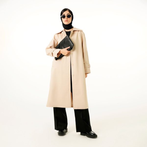 بارانی بلند دکمه مخفی 112022 رنگ کرم