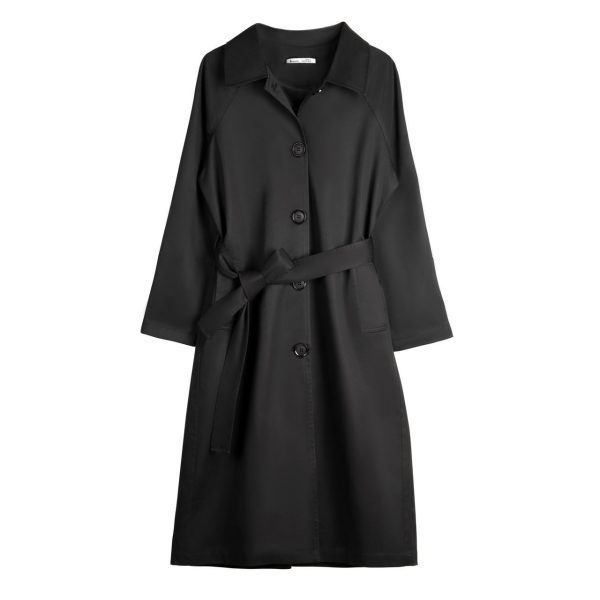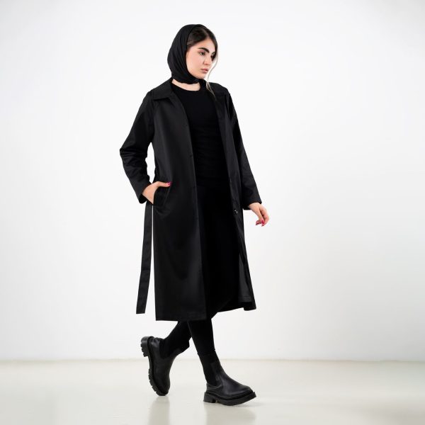 بارانی بلند دکمه مخفی 112022 رنگ مشکی