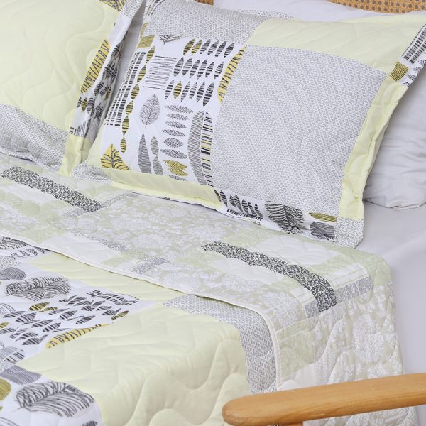 ست روتختی پنبه دوز دو نفره سه تکه بروجرد چهل تکه رنگ لیمویی